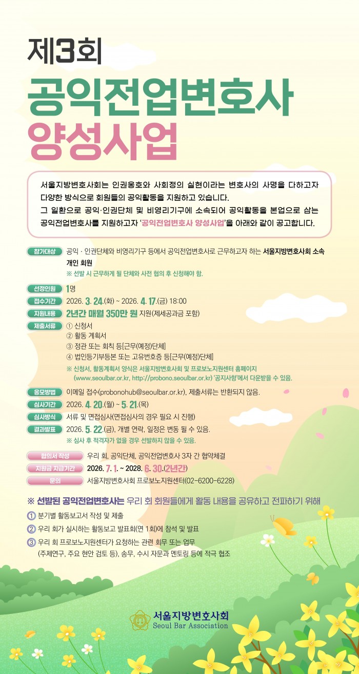 [서울지방변호사회 프로보노지원센터]서울지방변호사회 ‘제3회 공익전업변호사 양성사업’ 홍보